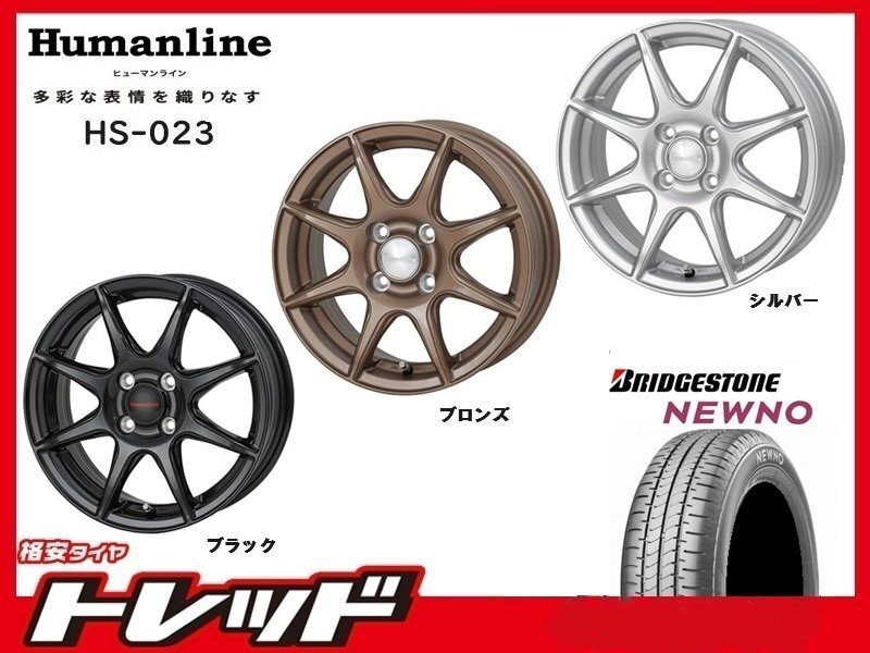 > (数量限定 2023年製)新横浜師岡店 新サマータイヤアルミ4本set ヒューマンライン HS-023 14インチ5.5J4穴100+43 NEWNO 165/70R14