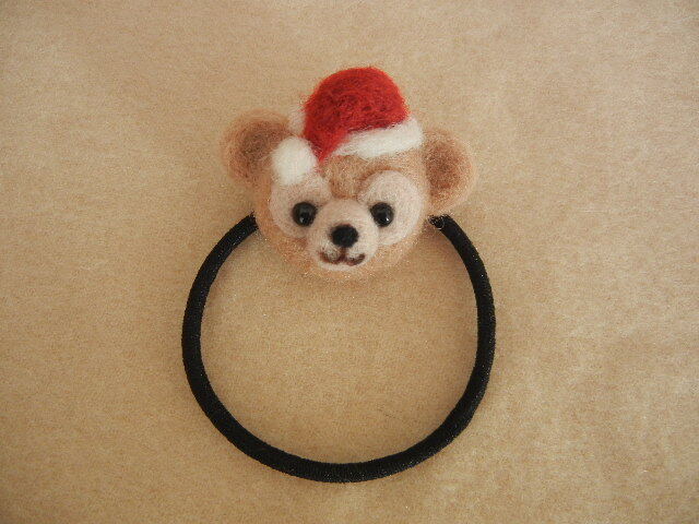 - 羊毛フェルト ハンドメイド ダッフィー風 クリスマス ヘアゴム サンタクロース マスコット アクセサリー
