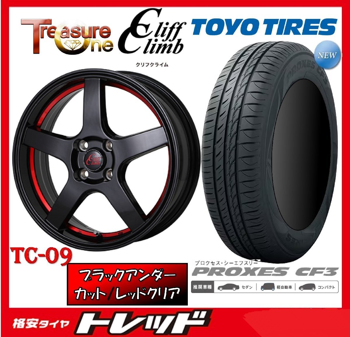 > 数量限定 2023年製)新横浜師岡店 新サマータイヤアルミ4本set クリフクライム TC09 14インチ4.5J4穴100+45 TOYO プロクセス CF3 155/65R14