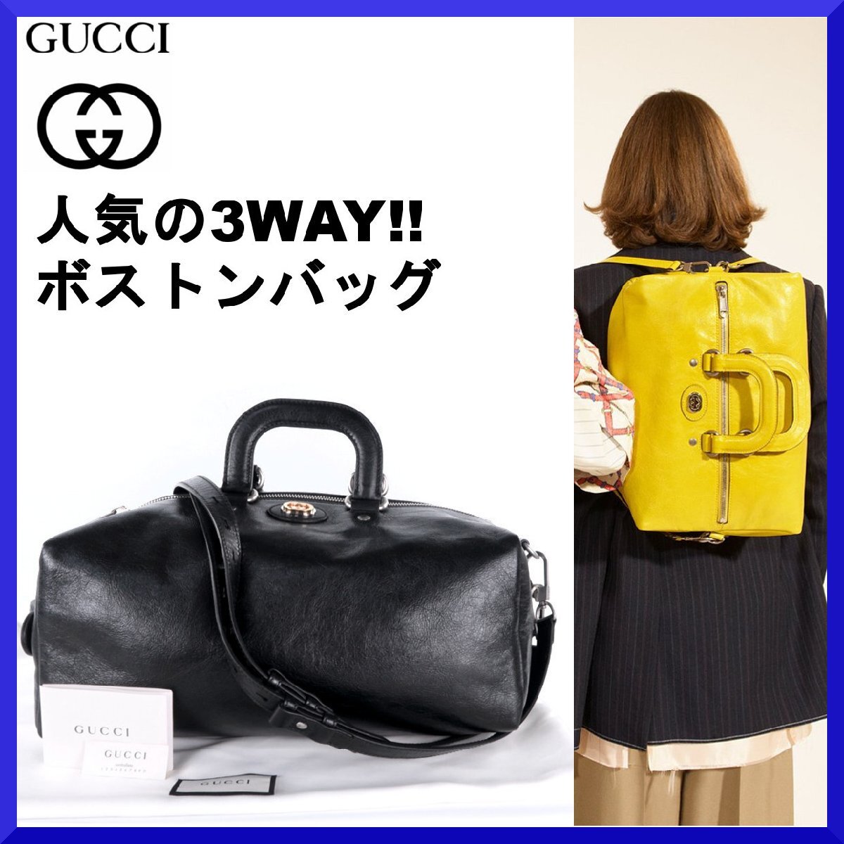 - 価格43万新品本物グッチGUCCI伊製【人気の3WAY!!GGマーク】高級感◎本革レザーボストンバッグ/ショルダー/リュック/インターロッキングG/黒