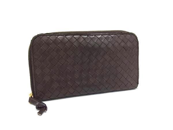 > 1円 BOTTEGA VENETA ボッテガヴェネタ イントレチャート レザー ラウンドファスナー 長財布 ウォレット メンズ ブラウン系 FS6345