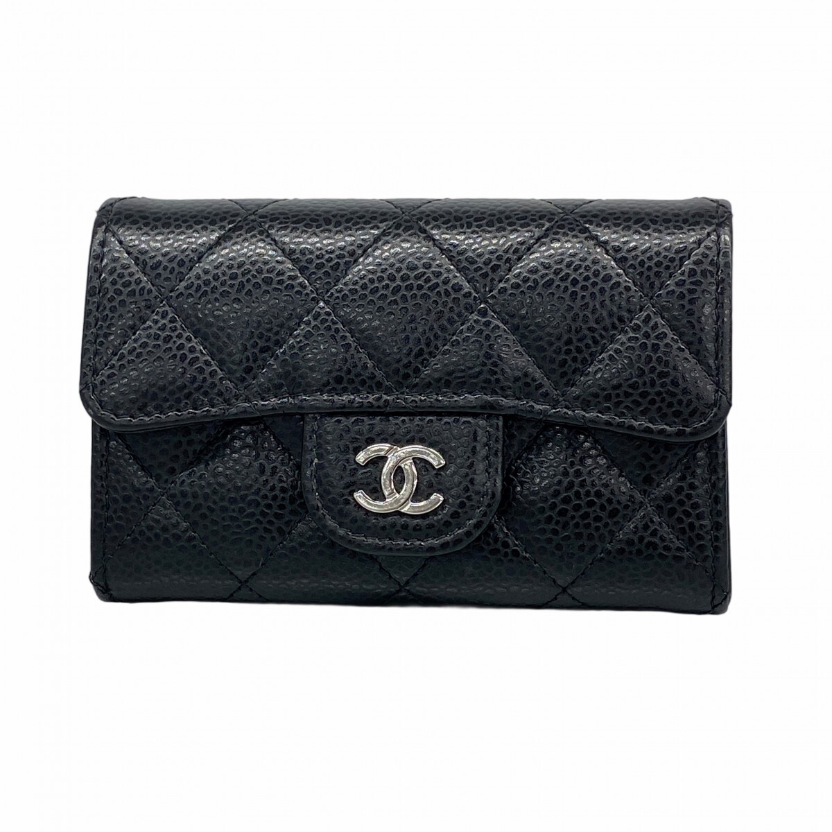 - ★最終価格【5mc2508】シャネル カードケース マトラッセ キャビアスキン ブラック シルバー金具【中古】レディース