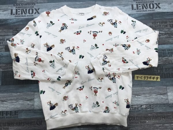 > jeaning キッズ 日本製 総柄プリント レトロ トレーナー 160 白他