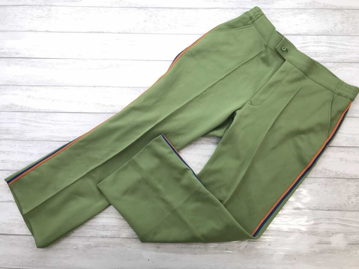 > レトロ オールド スポーツ トラッド サイドライン センタープレス ジャージ スラックス パンツ ボトムス ウエスト一部ゴム メンズ 緑