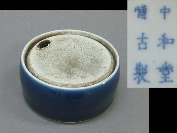 - 【心庵】中国 中和堂博古製 瑠璃釉/陶硯 硯形水滴 付箱 B028