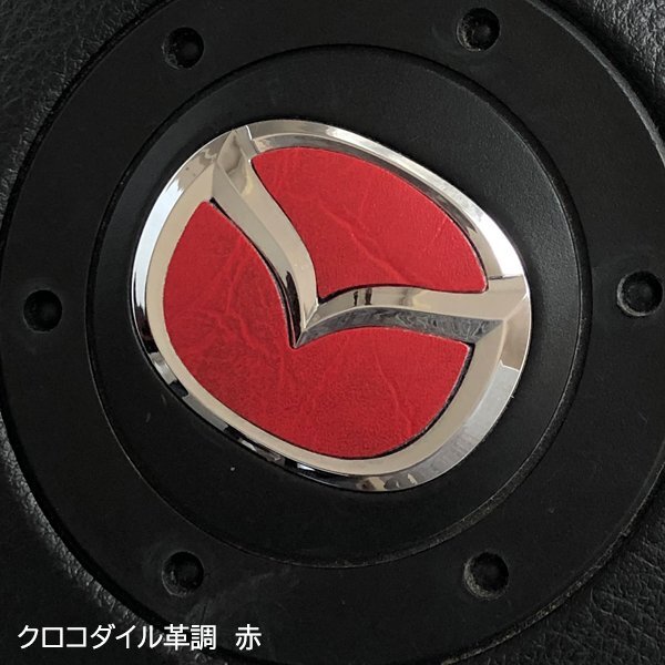 - マツダ ステアリング エンブレムシート クロコダイル革調 レッド 簡単取付け ハンドル ZEROWIN MAZDA ドレスアップ 送料無料 日本製