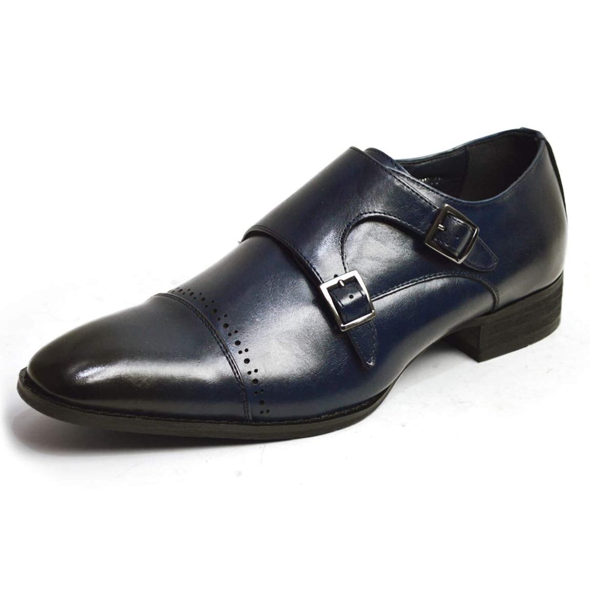 > 新品■26cm ビジネスシューズ メンズ 革靴 ドレスシューズ フォーマル イタリアンテイスト 紳士靴 ロングノーズ 黒 紺 モンクストラップ