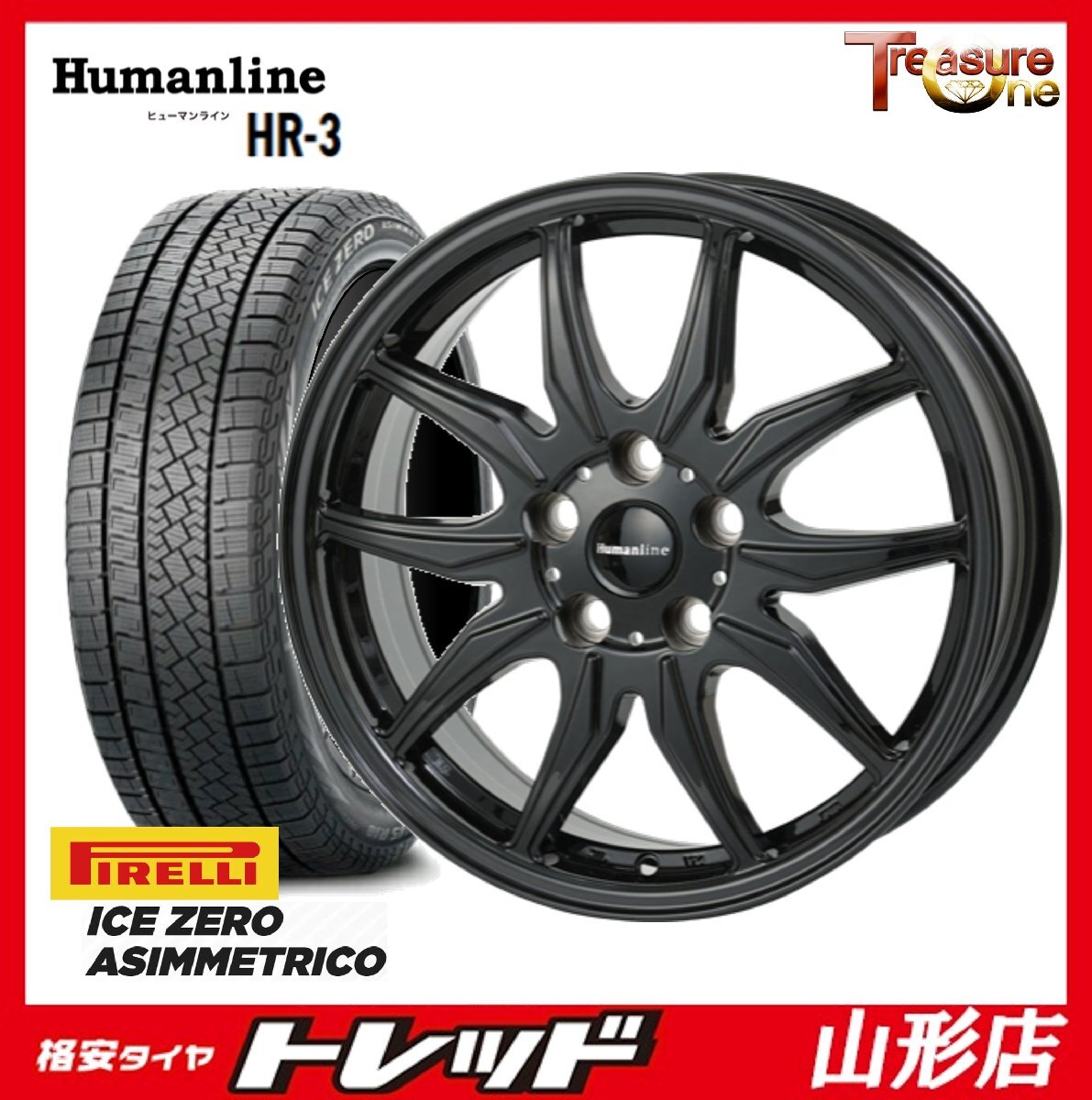 > 山形店 新品 冬タイヤホイールセット Humanline HR-3 17インチ 6.5j 5H120 +40 BK ピレリ アイスゼロ アシンメトリコ 225/65R17 2024年製