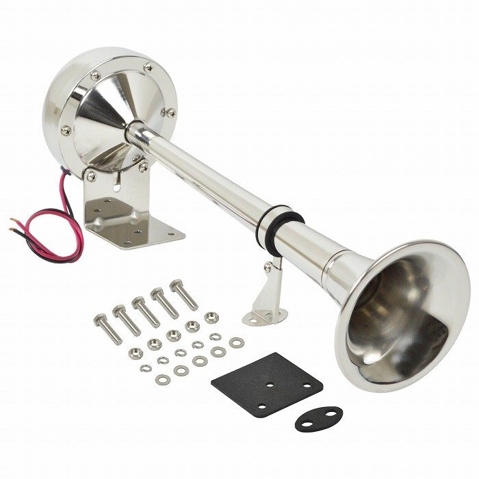 - トランペット型 マリンホーン 12V ステンレス製 船 マリンサイレン 警報音 汽笛 ボート ホーン ヨット 漁船 遊漁 クルーザー