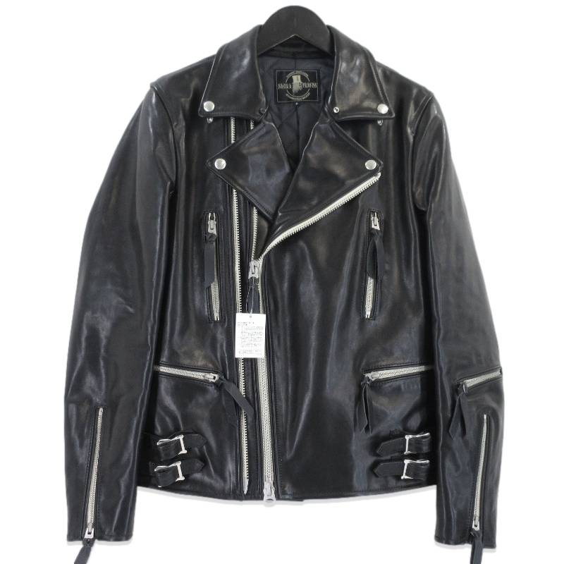 > 未使用 SKULL FLIGHT スカルフライト ダブルライダースジャケット SFL23-001 ツインジップライダース ブラック 黒 S 70017230
