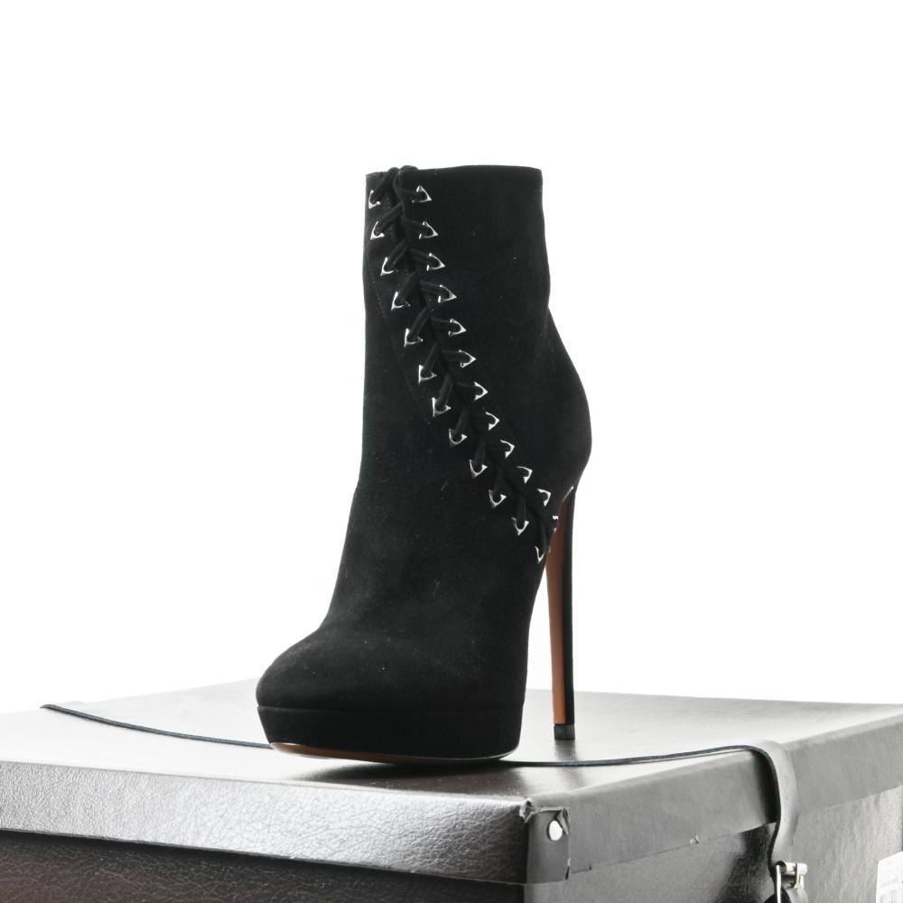 - 美品 ALAIA スエード レースアップ ピンヒールブーツ 37 1/2 ブラック アライア KL4QBLBP63