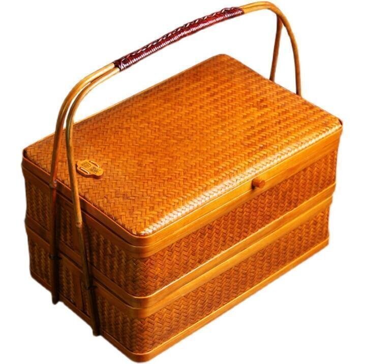 - 新入荷★美品☆2層★茶道具 飯盒★職人手作 竹製 手作 茶器 收納 漆器 茶盒 茶箱_画像1 新入荷★美品☆2層★茶道具 飯盒★職人手作 竹製 手