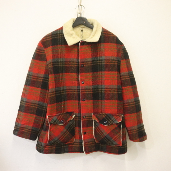 - n50 70sビンテージ Lee-warld ウールジャケット■1970年代製 XLサイズくらい 赤 レッド チェック 裏地ボア アメカジ ストリート 古着
