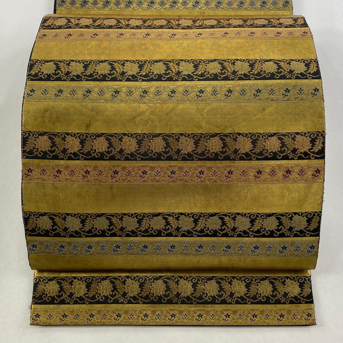 - 袋帯 名品 箔屋清兵衛 落款 名物裂間道 金糸 箔 黒 お太鼓柄 正絹 【中古】