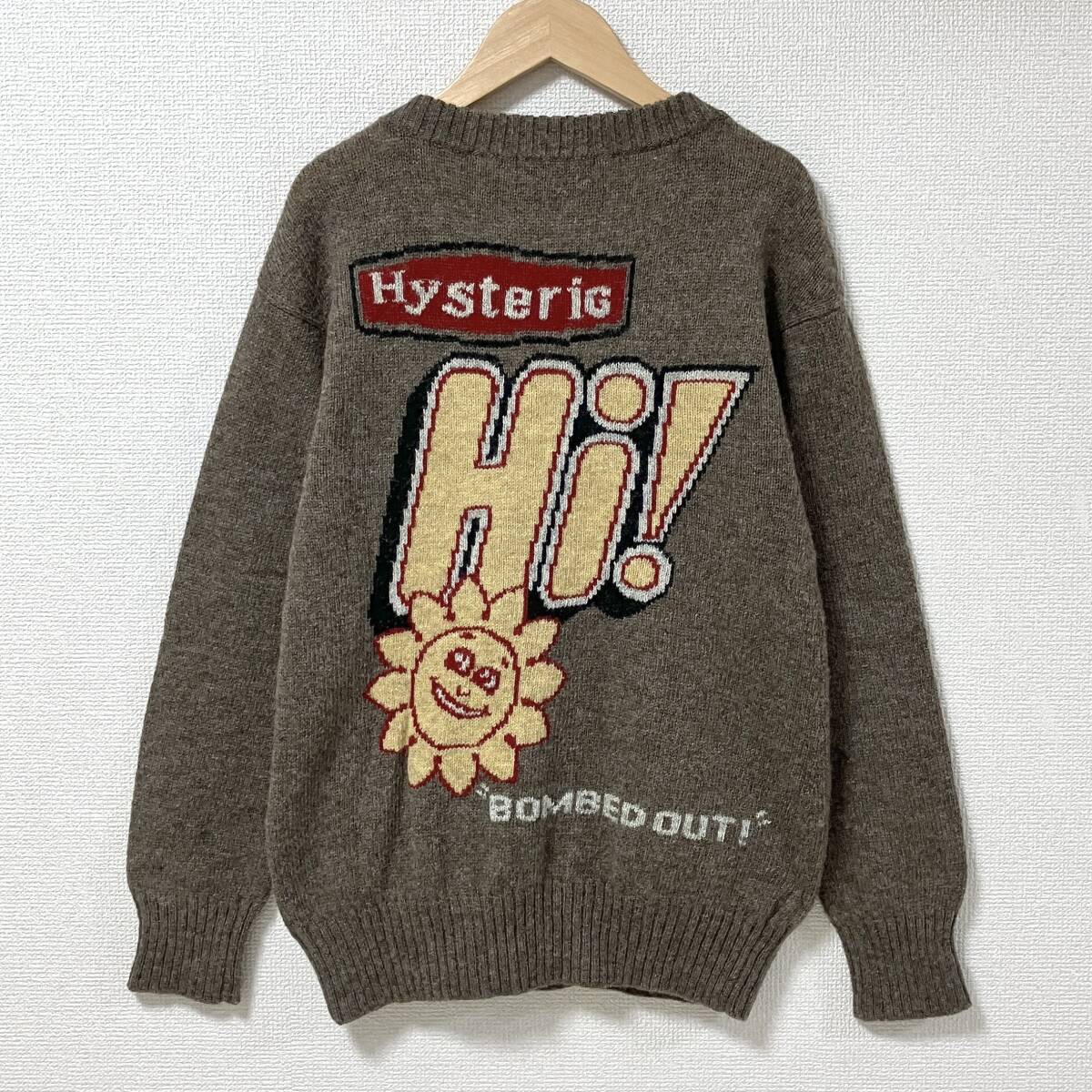 - 90s 00s HYSTERIC GLAMOUR フラワー ロゴ ウール ニット カーディガン 茶 ヒステリックグラマー Y2K VINTAGE archive 5090115