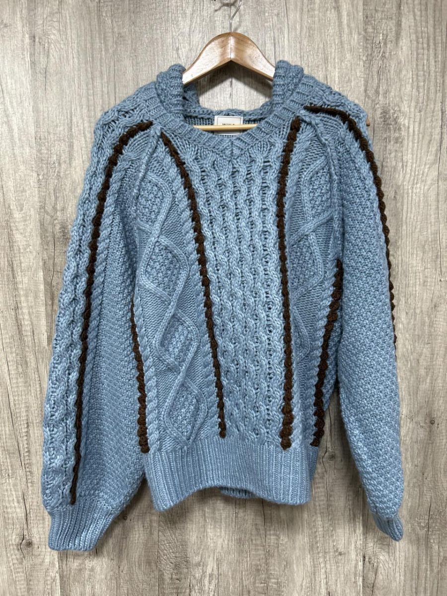 > WHO’S WHO gallery フーズフーギャラリー パイピングケーブルニット ニット セーター sizeF/水色 ◆■ レディース