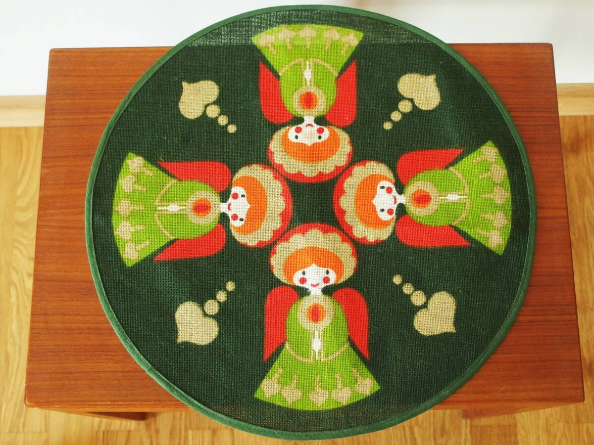 > デンマーク Sodahl ソダール ヴィンテージ クリスマス時期用 テーブルセンター、クロス 天使 (緑,丸) Hans.Jurgen.Schobel 直径42cm