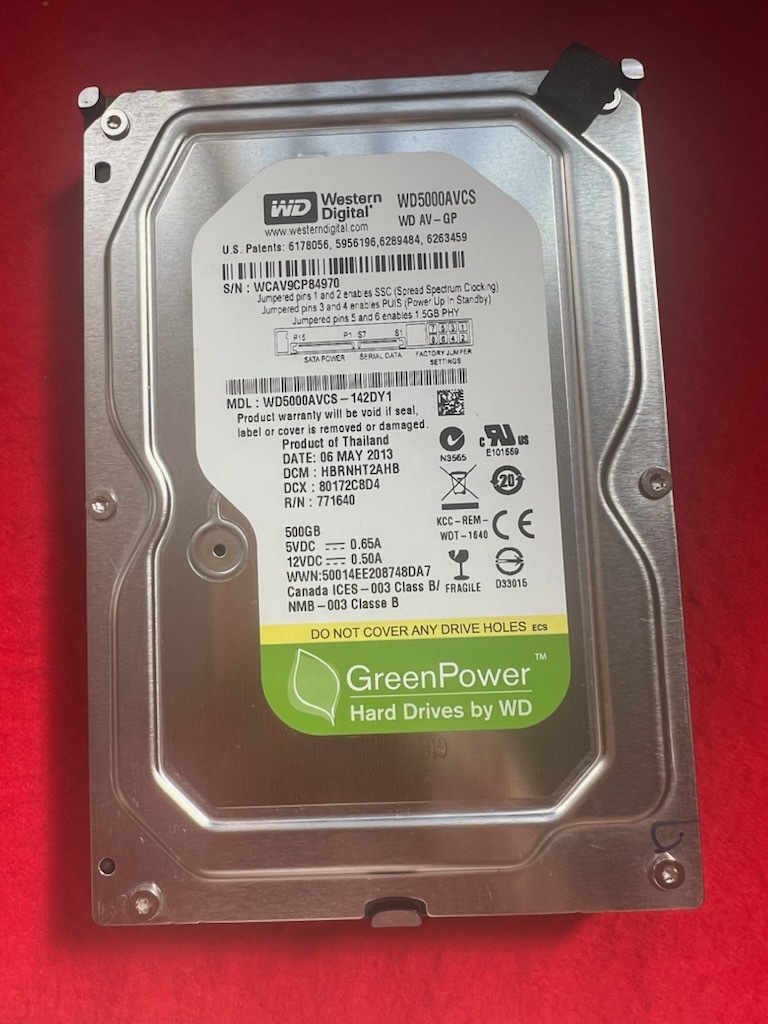 > 不良返金保証 純正 WDC WD5000AVCS-142DY1 500GB ☆DMR-BZT700 BZT600 BWT500 BRT300他(A053)