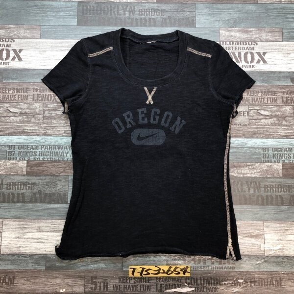 - NIKE ナイキ レディース ロゴプリント ニット調 半袖Tシャツ 紺