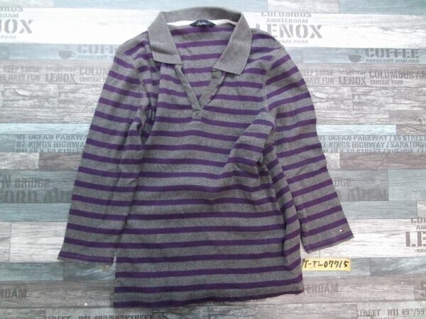 > TOMMY HILFIGER トミーヒルフィガー レディース 七分袖 オープンカラー ニットソー L 紫グレー