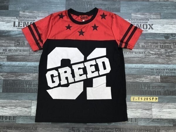 - GREED メンズ ビッグプリント バイカラー ユニフォーム 半袖Tシャツ M 黒赤