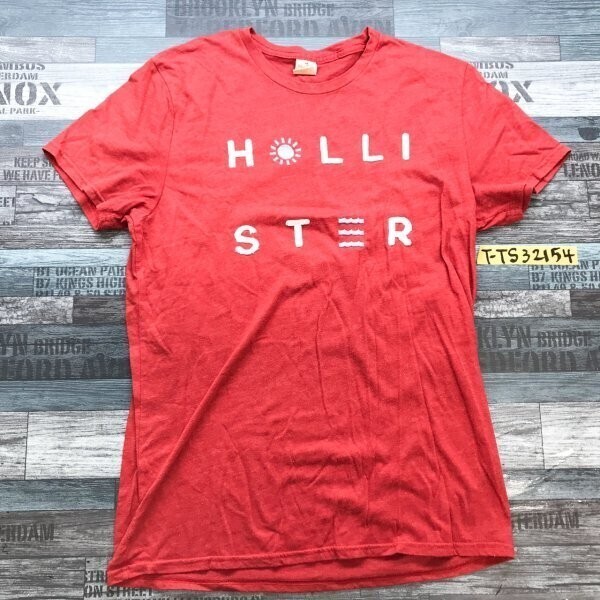 - Hollister ホリスター メンズ ビッグロゴワッペン 半袖Tシャツ M 赤