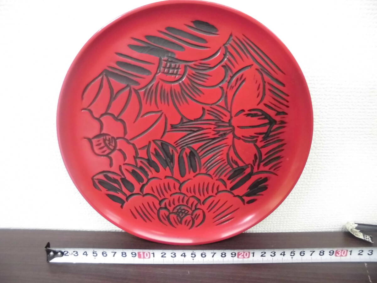 - [M15] 仙臺銘産 仙臺堆朱 仙台堆朱 皿 おぼん 木製彫刻 現代の名工 南忠 の漆作 未使用?