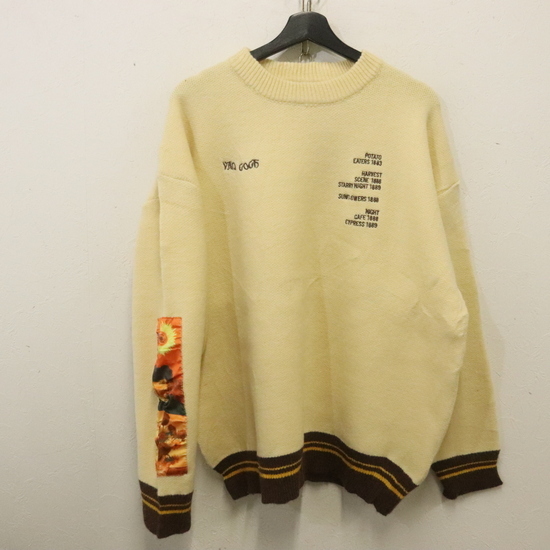 - C871 2000年代製 AELFRICEDEN ゴッホ ひまわり アクリルニットセーター■00s 表記Lサイズ アイボリー アート アメカジ ストリート 古着 90s