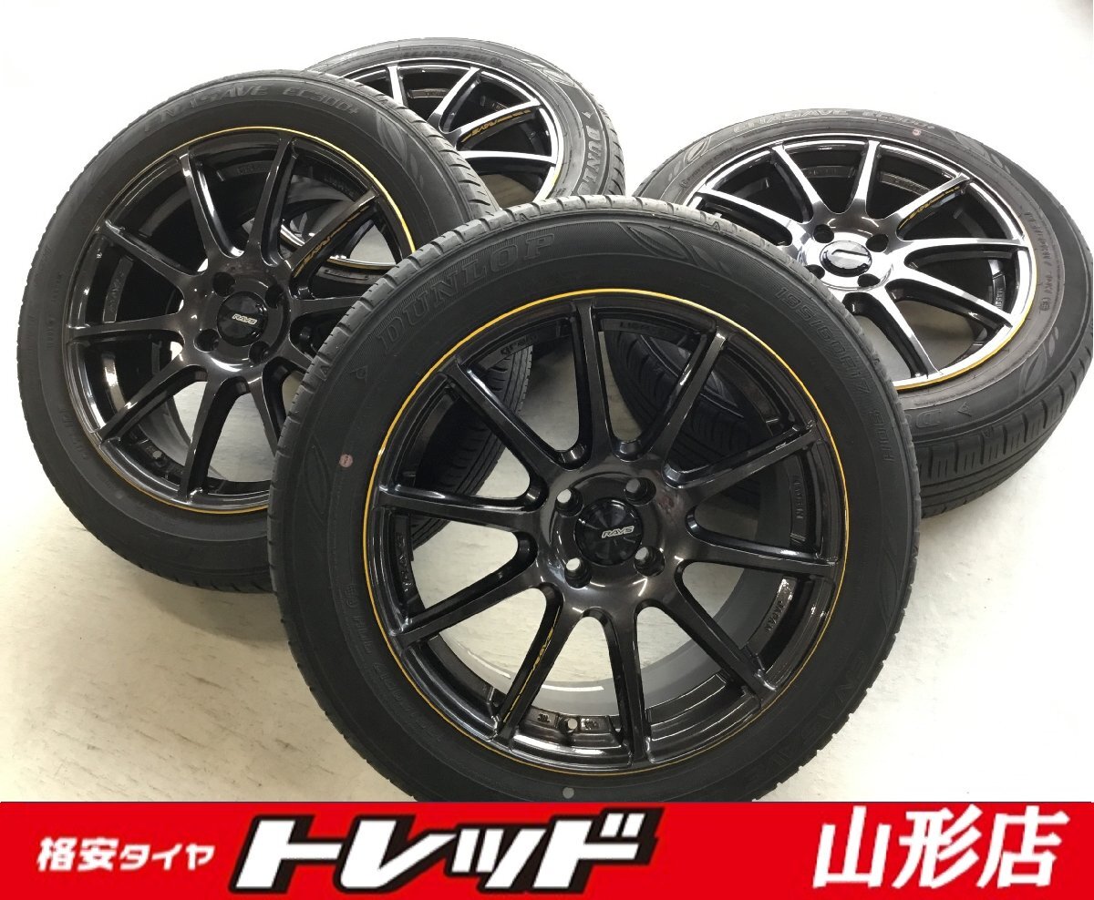 > 山形店 中古 夏タイヤホイール4本セット RAYS グラムライツ 57Transcend UNLimit 17インチ 7.0J 4H100 +44 DUNLOP EC300+ 195/60R17 ライズ