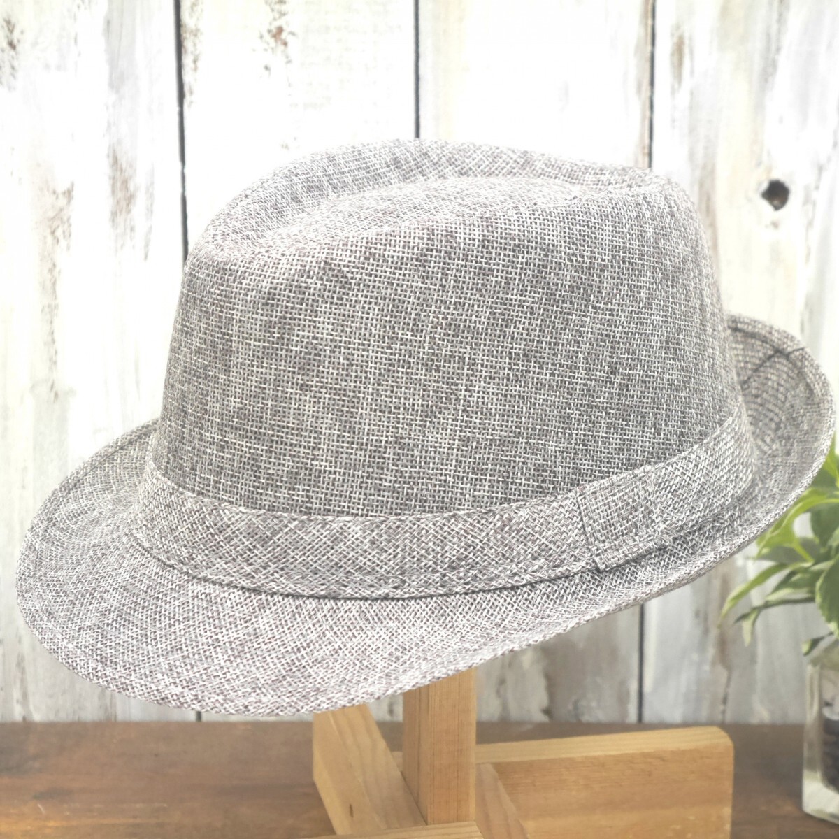 - 全国一律送料450円 リネン風 麻 シンプルフェドラハット グレー シンプル 男女OK ハット パナマ ボルサリーノ 中折れ