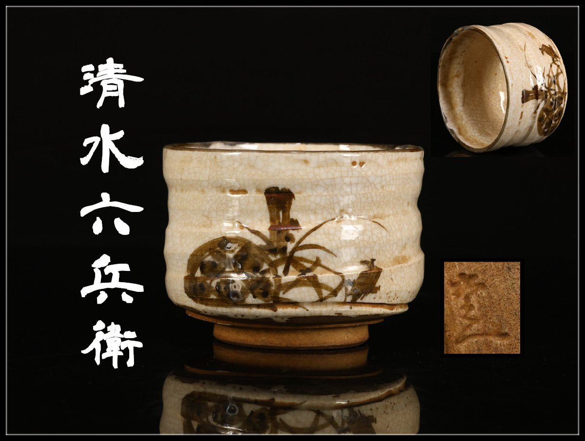 【吉】CN761 京焼名工 【清水六兵衛】 鉄絵蘭文 湯呑/箱付 美品!拍卖