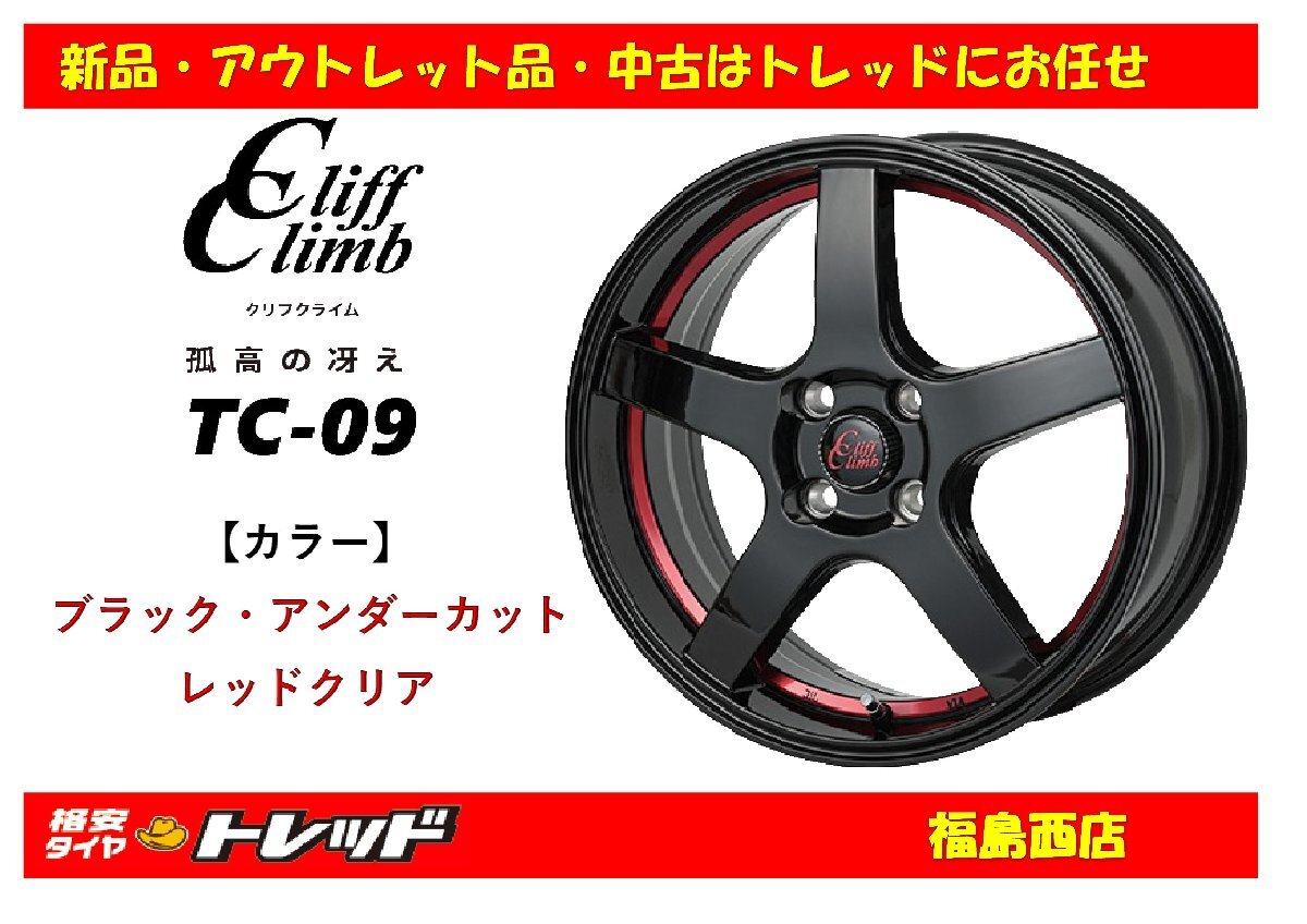 - 福島西 新品 アルミホイール単品4本セット クリフクライム TC-09 14インチ 4.5J 100/4H +45 レッドクリア ★ekクロス デイズ アルト 等★