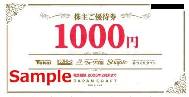 - ◆02-04◆ジャパンクラフトHD 株主優待券 (1000円券) 4枚set-B◆