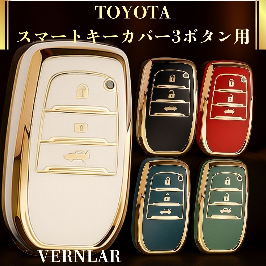 - トヨタ スマートキーケース 3ボタン用 ホワイト ノア/ヴォクシー90系・アルファード TPU保護カバー 高級 ゴールドフレーム