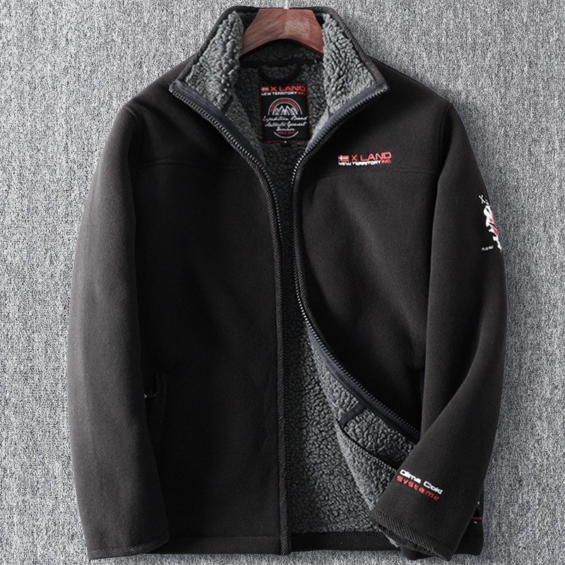 - 新品 フリース ジャケット ブルゾン トラックジャケット 裏ボア 厚手 防寒 裏暖 メンズ 秋冬 フードブルゾン アウター 黒 T1051-L