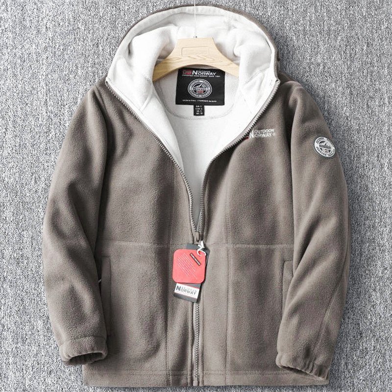 - 新品 フリース ジャケット デザイナーズ フード付き ブルゾン 暖かさ 裏ボア 厚手 メンズ 秋冬 フードブルゾン アウター カーキ T7164-3XL