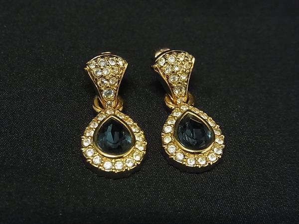 > ■美品■ SWAROVSKI スワロフスキー ラインストーン ピアスチャーム アクセサリー レディース ゴールド系×ブルー系 DK6058
