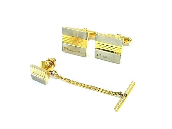 > ChristianDior ディオール カフスボタン カフリンクス タイタック アクセサリー 2点セット メンズ シルバー系×ゴールド系 DK7331