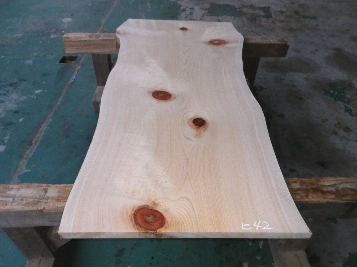 - 長137*幅57-71*厚3 桧42の木材木工材,一枚板自然木無垢材DIY テーブル天板 ヒノキ
