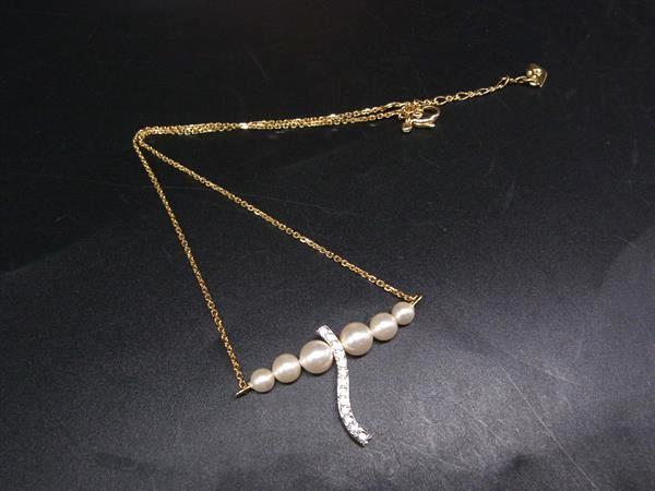 > ■美品■ SWAROVSKI スワロフスキー ラインストーン パール ネックレス アクセサリー レディース ゴールド系×アイボリー系 DK4737