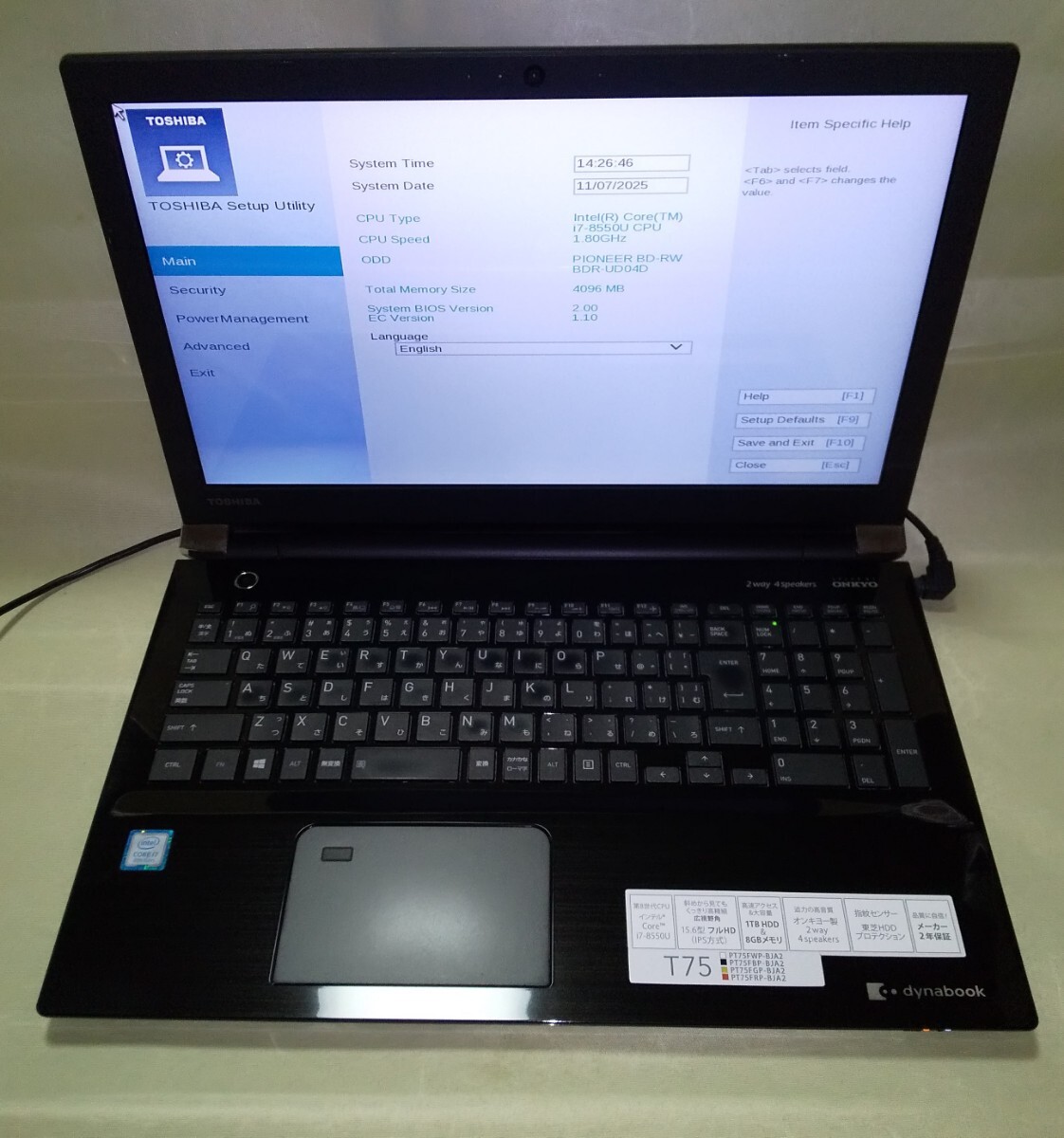 > 【Bios OK】 TOSHIBA dynabook T75/FB i7-8550U 4GB 第8世代 ①