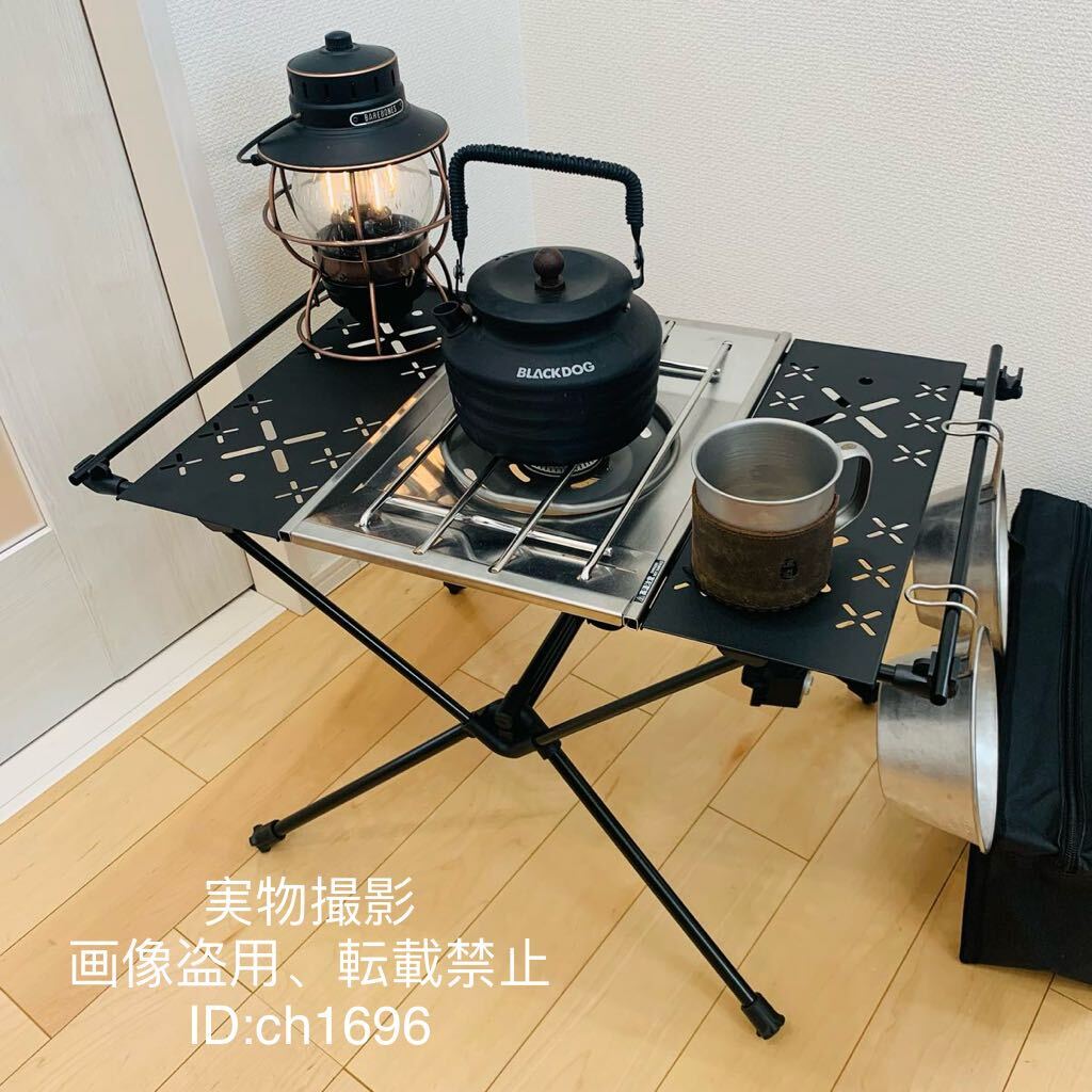 > 高品質 アウトドア 組立式igtテーブル 超軽量1.2kg 頑丈安定 ハンガー アルミ天板4枚 アルミ合金ステント 収納付 キャンプ 38×39×59cm