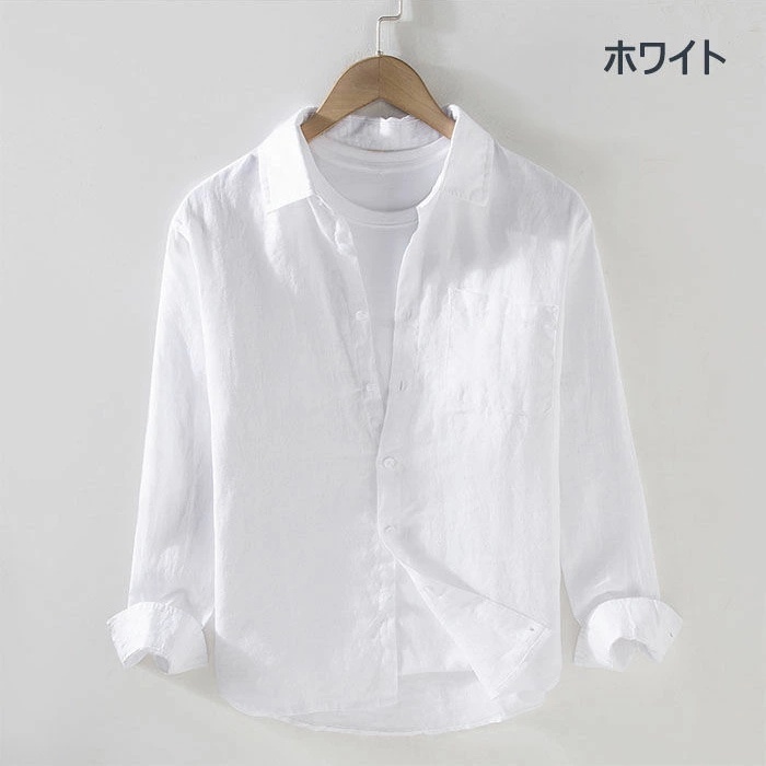 > リネンシャツ メンズ 長袖シャツ 麻100%シャツ サマーシャツ 薄い カジュアルシャツ Zty-5867 ホワイト L