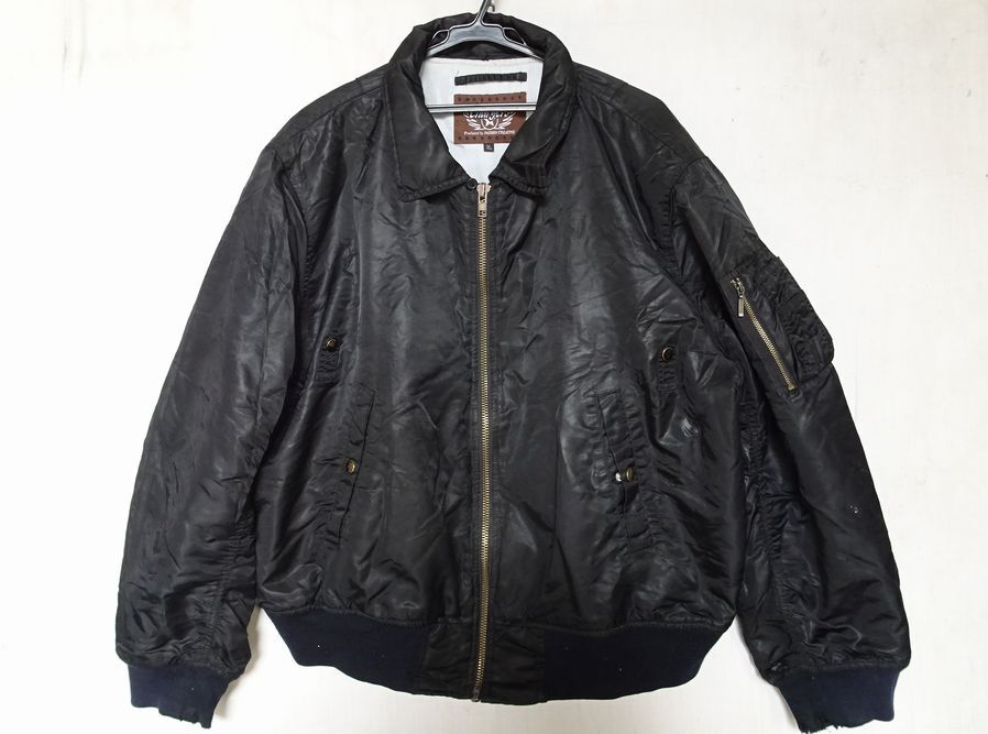 - Chargers/チャージャーズ/MA-1フライトジャケット/中綿入ジャンパー/前ジップアップ/袖口・裾リブ/黒/ブラック/3Lサイズ(11/7R7)