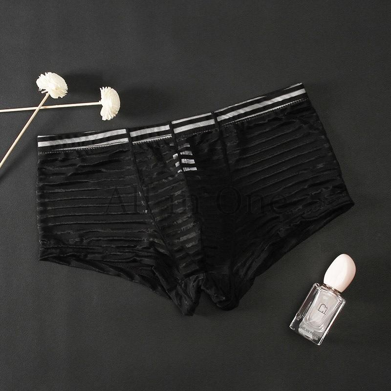 - 97-210-6 透けボーダー メンズ ボクサー パンツ 【ブラックXLサイズ】男性 下着 ショーツ セクシー インナーウェア スケスケ パンツ.4