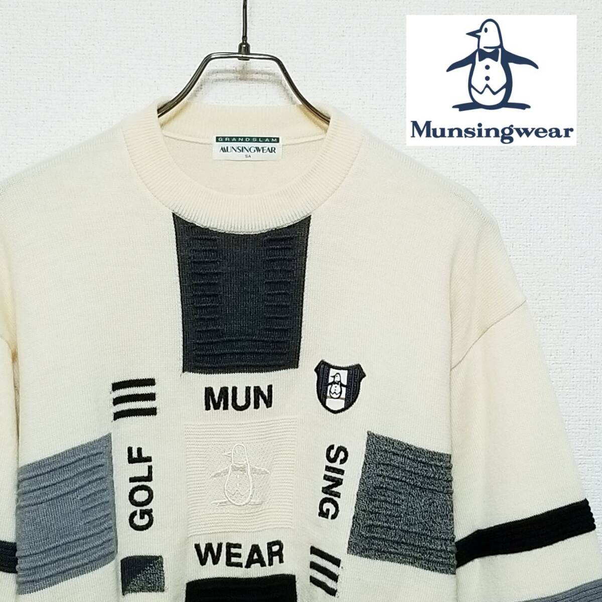 > 【デサント製】◎ Munsingwear マンシングウェア/長袖 刺繍ロゴ クルーネック ニットセーター SIZE:SA クリーム