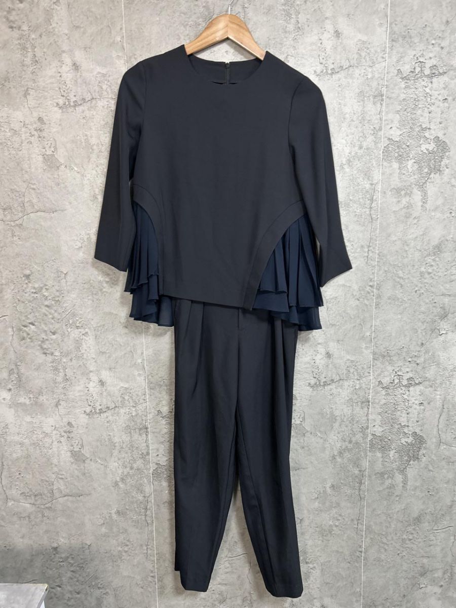 > RUIRUE BOUTIQUE ルイルエブティック フォーマル プリーツ セットアップ ジャケット パンツ スーツ 濃紺 ■■ レディース