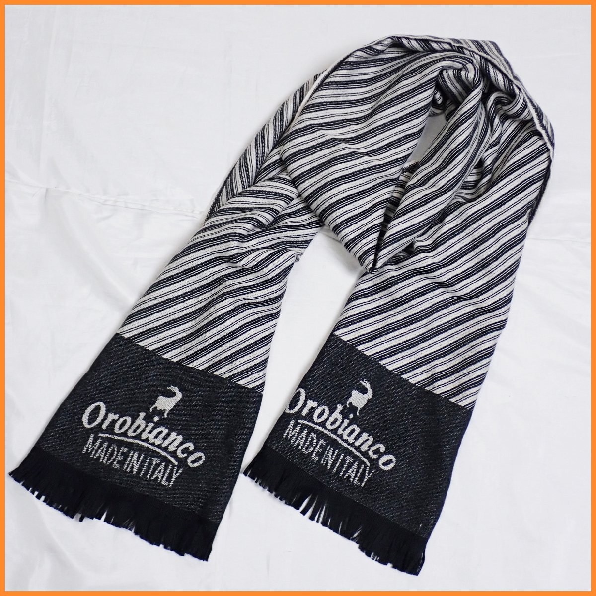 > ★未使用 Orobianco/オロビアンコ マフラー 全長190cm/アイボリー/レジメンタルストライプ/タグ付き/イタリア製/ストール&0699400325