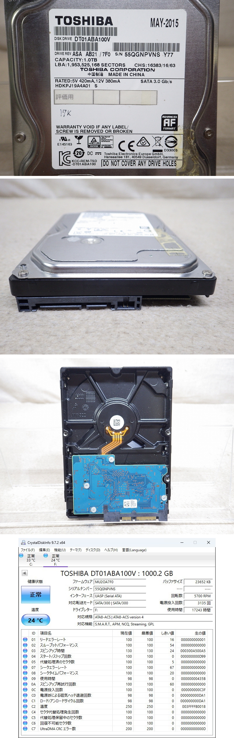 - Kネま2109 東芝/TOSHIBA SATA 3.5インチ 内蔵HDD 1TB DT01ABA100V パソコン周辺機器 PCパーツ ハードディスク