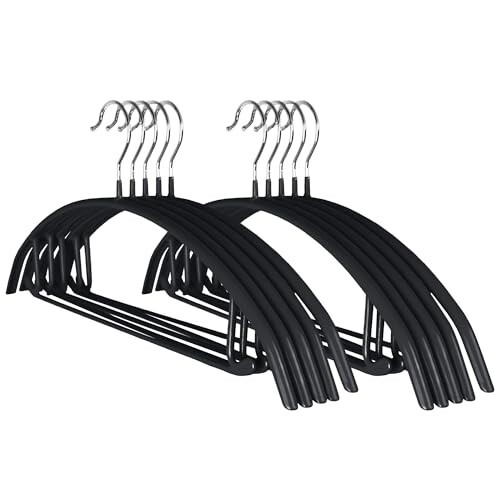 - 万博出展ブランド 滑らないアーチ型スーツハンガー10本 黒 訳あり 耐荷重15kg 薄型1cm